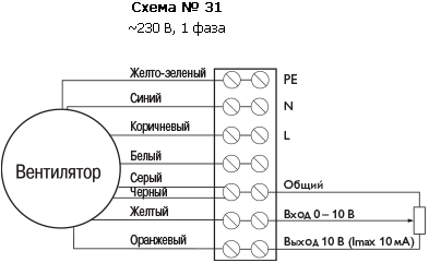 Регулирование скорости вентиляторов осуществляется в диапазоне от 0 до 100% с помощью встроенного потенциометра или внешним сигналом 0–10 В. Потенциометр установлен в клеммной коробке и при необходимости управления внешним регулятором встроенный потенциометр необходимо отключить.