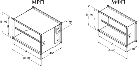 Устройства представляют собой прочный прямоугольный корпус с присоединительными фланцами, внутри которого размещен измерительный зонд; штуцеры для подключения прибора для измерения перепада давления размещены на корпусе устройства. Устройства МРП дополнительно оснащены регулирующей заслонкой с поворотными жалюзи и ручным приводом.