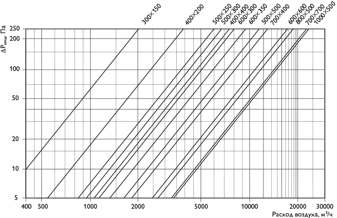 - МФП/МРП … – стандартное исполнение. Для измерения расхода воздуха требуется прибор для измерения перепада давления с рабочим диапазоном не менее 0–300 Па (определение текущего расхода воздуха производится по формуле, приведенной ниже).