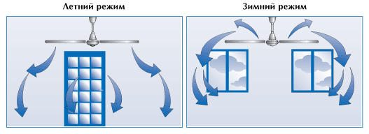 Переключение режимов работы вентилятора осуществляется пультом управления с выключателем, пятискоростным переключателем скорости и переключателем направления вращения вентилятора (опция).