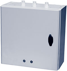 Корпус регуляторов изготовлен из окрашенной стали. Индикаторные лампочки на передней панели показывают состояние регулятора. Входная цепь регуляторов защищена плавкими предохранителями.