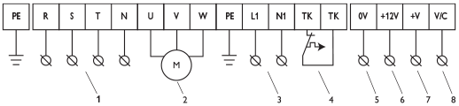 Рекомендуется подключать к регуляторам электродвигатели с вынесенными термоконтактами тепловой защиты, которые подсоединяются к клеммам ТК регулятора.