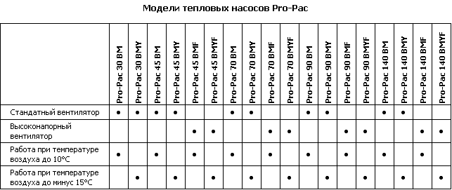 Тепловые насосы Pro-Pac предназначены для нагрева воды в бассейне. В тепловых насосах Pro-Pac применяется титановый теплообменник, который не корродирует под действием химикатов, содержащихся в воде бассейна. Тепловые насосы оснащены микропроцессорной системой управления, регулирования и оптимизации рабочих параметров.