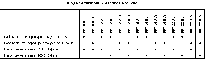 Модели тепловых насосов: