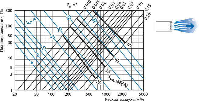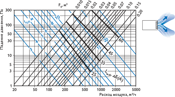 | Данные для подбора решёток ПРС при подаче воздуха |