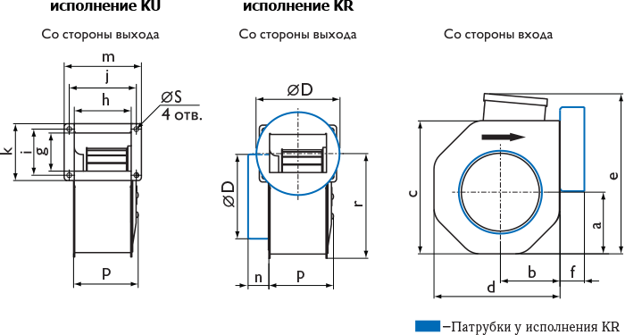 Центробежные вентиляторы с односторонним всасыванием RFE оснащены асинхронным двигателем с внешним ротором и рабочим колесом с загнутыми вперед лопатками. Двигатель и рабочее колесо вентилятора расположены на откидывающейся пластине, что делает доступ к ним лёгким, быстрым и удобным. Корпус вентилятора изготавливается с из оцинкованной стали. Стандартное исполнение вентиляторов - правое.