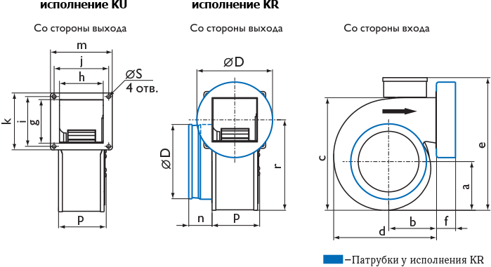 Центробежные вентиляторы с односторонним всасыванием RFE оснащены асинхронным двигателем с внешним ротором и рабочим колесом с загнутыми вперед лопатками. Двигатель и рабочее колесо вентилятора расположены на откидывающейся пластине, что делает доступ к ним лёгким, быстрым и удобным. Корпус вентилятора изготавливается с из оцинкованной стали. Стандартное исполнение вентиляторов - правое.