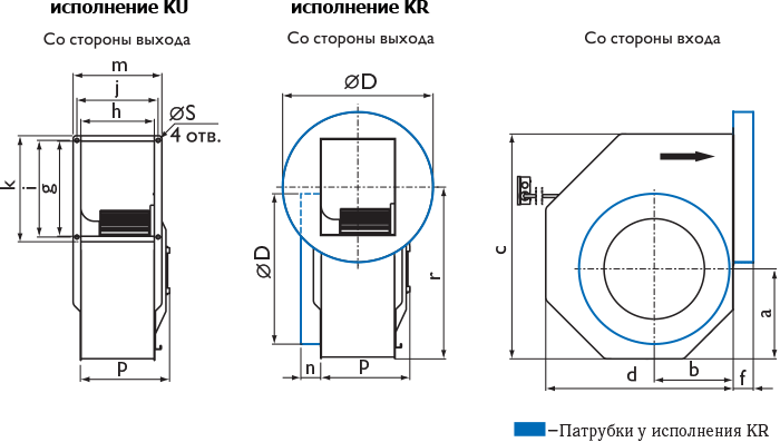 Все двигатели защищены термоконтактами. Однофазные вентиляторы имеют встроенный термоконтакт с автоматическим перезапуском. Трёхфазные вентиляторы имеют вынесенные термоконтакты (ТК), которые необходимо подключить к соответствующим клеммам регулятора скорости или модуля управления.