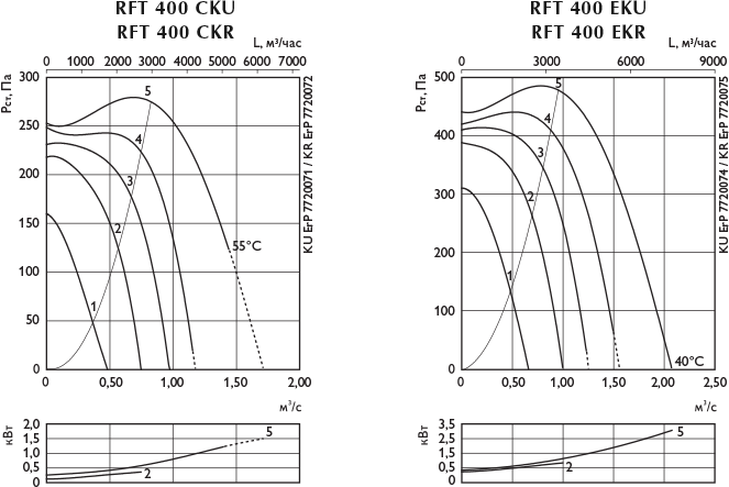 Центробежные вентиляторы с односторонним всасыванием RFT оснащены асинхронным двигателем с внешним ротором и рабочим колесом с загнутыми вперед лопатками. Двигатель и рабочее колесо вентилятора расположены на откидывающейся пластине, что делает доступ к ним лёгким, быстрым и удобным. Корпус вентилятора изготавливается с из оцинкованной стали. Стандартное исполнение вентиляторов - правое.