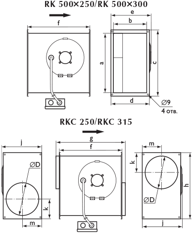 Канальные вентиляторы RK/RKC оснащены асинхронным двигателем с внешним ротором и рабочим колесом с загнутыми вперед лопатками. Двигатель и рабочее колесо вентилятора расположены на откидывающейся пластине, что делает доступ к ним лёгким, быстрым и удобным. Корпус вентилятора изготавливается из оцинкованной стали.