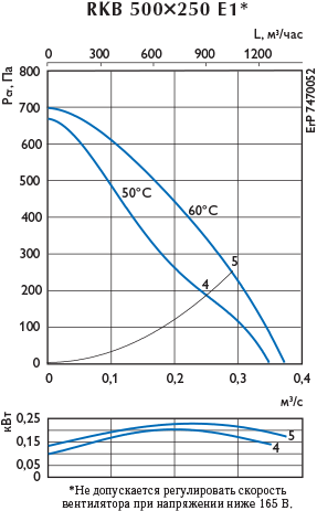 температура перемещаемого воздуха составляет у RKB 500x250 E1 – 50°С. |