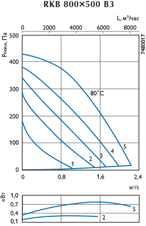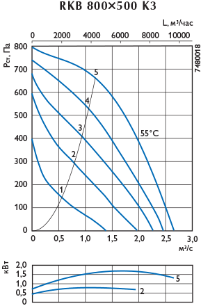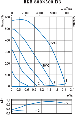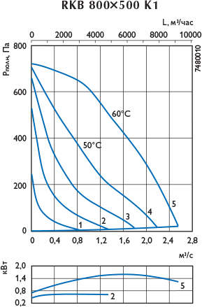температура перемещаемого воздуха составляет у RKB 800x500 D3 и RKB 800x500 K1 – 50°С |