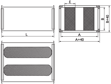 Корпус шумоглушителей изготавливается из оцинкованной стали. Внутри корпуса установлены звукопоглощающие пластины из минерального волокна.