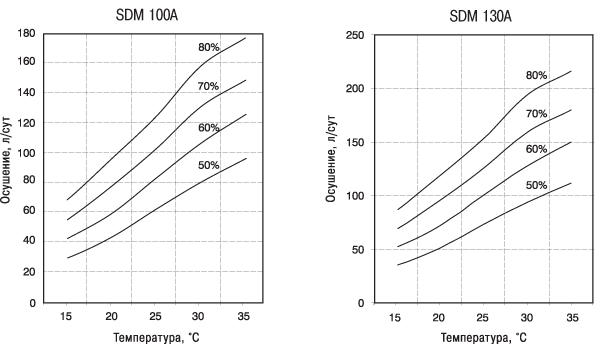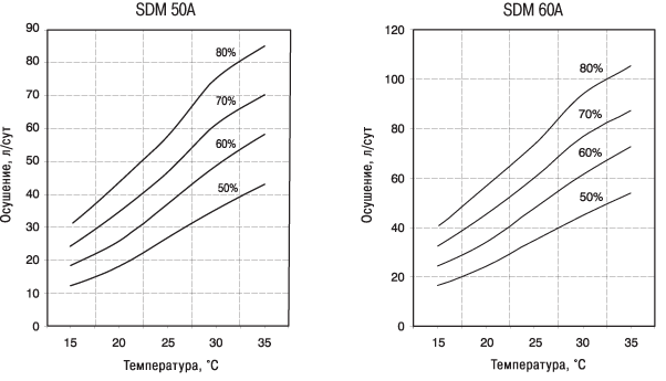 Блок снабжен дисплеем, на котором отображаются режимы работы осушителя, значения относительной влажности и температуры.