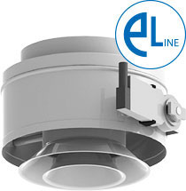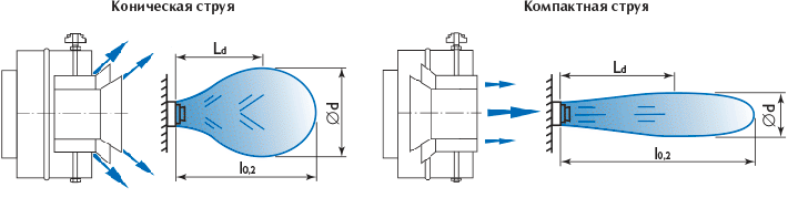 Многоконусные сопловые воздухораспределители SMK... E1 предназначены для реализации систем вентиляции и кондиционирования с автоматическим изменением параметров системы воздухораспределения в зависимости от времени года (кондиционирование / вентиляция / воздушное отопление). Воздухораспределители SMK... E1 рекомендуются для применения в помещениях больших объемов и/или с высокими потолками (концертные, спортивные, выставочные залы, стадионы, торговые комплексы, производственные цеха, вокзалы, ангары и т. п.), где необходимо обеспечить раздачу значительных объемов воздуха с высокой дальнобойностью в изотермическом и неизотермическом режимах (нагрев и охлаждение). Многоконусные сопловые воздухораспределители SMK... E1 оснащены электроприводом и представляют собой корпус с подводящим патрубком, внутри которого на подвижной оси расположена центральная вставка, выполненная в виде набора цилиндров с коническим раструбом. С помощью электропривода путем изменения положения центральной вставки достигается выбор одного из двух вариантов подачи воздуха — дальнобойной компактной (конический раструб направлен внутрь воздухораспределителя) или конической струёй (конический раструб направлен наружу от воздухораспределителя) и, при необходимости, обеспечивается отклонение направления струи в диапазоне ±30° для компактной и ±20° для конической струи от оси симметрии воздухораспределителя. Воздухораспределители SMK... E1 устанавливаются, как правило, на отводах круглых воздуховодов при открытой прокладке воздуховодов. Монтаж диффузоров осуществляется с помощью присоединительного патрубка, который крепится к воздуховоду саморезами или заклепками. Конструкция воздухораспределителя предусматривает возможность присоединения воздуховодов двух разных диаметров А или В, см. чертеж. Диффузоры изготавливаются из стали и окрашиваются методом порошкового напыления в белый цвет (RAL 9010). При изготовлении на заказ возможна окраска диффузоров в любой цвет по каталогу RAL. | ||||||||||||||||||||||||||||||||||||||||||||||||||||||||||||||||||||||||||||||||||||||||||||||||||||||||||||||||||||||||||||||||||||||||||||||||||||||||||||||||||||||||||||||||||||||||||||||||||||||||||||||||||||||||||||||||||||||||||||||||||||||||||||||||||||||||||||||||||||||||||||||||||||||||||||||||||||||||||||||||||||||||||||||||||||||||||||||||||||||||||||||||||||||||||||||||||||||||||||||||||||||||||||||||||||||||||||||||||||||||||||||||||||||||||||||||||||||||||||||||||||||||||||||||||||||||||||||||||||||||||||||||||||||||||||||||||||||||||||||||||||||||||||||||||||||||||||||||||||||||||||||||||