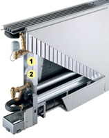 В 2-х трубном фанкойле установлен один теплообменник и радиаторная панель, в 4-х трубном – два независимых теплообменника и радиаторная панель. Теплообменники выполнены из пакета медных трубок с алюминиевым оребрением. Ребра теплообменника имеют специальное защитное покрытие. Конструкция теплообменника повышает коэффициент теплопередачи и создает минимальное сопротивление воздушному потоку. Радиаторная панель фанкойла изготовлена из стали методом высокоточной штамповки.