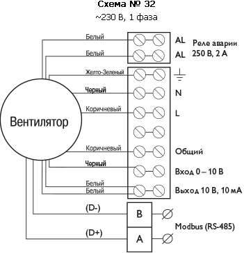 Все двигатели оснащены встроенной защитой от перегрузки. Все вентиляторы имеют два подсоединительных вывода реле аварии (AL), к которым можно подключать устройство аварийной сигнализации.