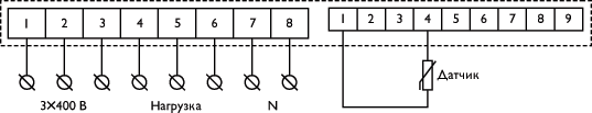 Симисторные регуляторы температуры предназначены для поддержания заданной температуры с помощью изменения мощности трёхфазных электрических нагревателей. Регулирование мощности происходит за счёт изменения времени включения и выключения полной мощности нагревателя (пропорциональное регулирование по времени). Время цикла устанавливается в диапазоне 6-60 секунд. Переключение нагрузки осуществляется полупроводниковыми приборами (симисторами) в тот момент, когда ток и напряжение на нагревателе равны нулю. Это уменьшает потребление электроэнергии, исключает возникновение электромагнитных помех и увеличивает время безотказной работы оборудования. Регуляторы имеют контакты для подключения внешних датчиков температуры, один из которых может быть использован для ограничения максимальной или минимальной температуры.