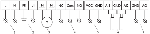 В регуляторах скорости предусмотрен нерегулируемый выход 230 В, который может использоваться для подключения электроприводов воздушных заслонок или другого оборудования.