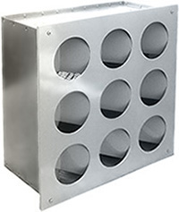 «Генератор комфорта» 1ВПК состоит из воздухораздающей панели, в которой выполнены круглые отверстия со специальным экраном, и камеры статического давления (КСД) с подводящим патрубком круглого сечения. Воздухораспределитель 1ВПКР оснащен регулирующим устройством для изменения расхода воздуха, установленным в подводящем патрубке КСД. Воздухораспределители 1ВПК/1ВПКР устанавливаются на отводах круглых воздуховодов при открытой прокладке воздуховодов или встраиваются в подвесные потолки. Материал панели – сталь, окрашенная методом порошкового напыления, стандартный цвет – глянцевый металлик (RAL 9006). Материал КСД – неокрашенная оцинкованная сталь. При изготовлении изделия на заказ возможна окраска панели и КСД в любой цвет по каталогу RAL. | |||||||||||||||||||||||||||||||||||||||||||||||||||||||||||||||||||||||||||||||||||||||||||||||||||||||||||||||||||||||||||||||||||||||||||||||||||||||||||||||||||||