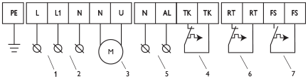 В регуляторах скорости предусмотрен нерегулируемый выход 230 В, который может использоваться для подключения электроприводов воздушных заслонок или другого оборудования. Кроме того, у регуляторов есть нормально замкнутый и нормально разомкнутый контакты для внешнего управления.